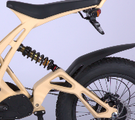 1.리어 서스펜션과 프론트 듀얼 크라운 서스펜션 포크는 산악 지형에서 라이딩할 때 편안한 충격 흡수 성능을 제공합니다.